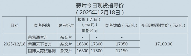 2025年12月19日大蒜、蒜片现货指导价
