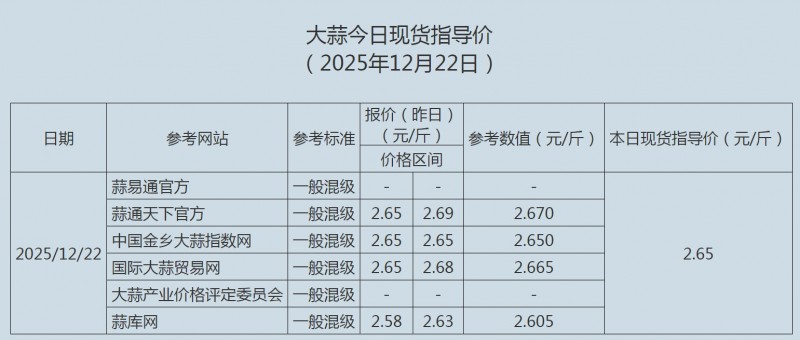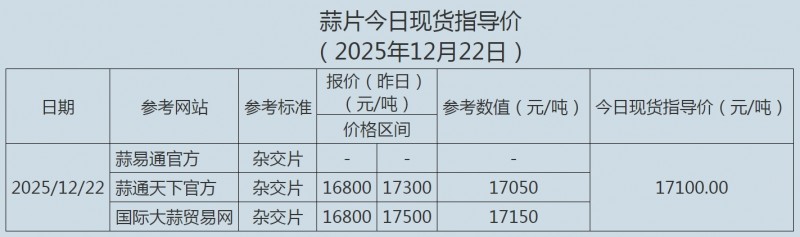 2025年12月22日大蒜、蒜片现货指导价