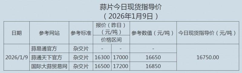 2026年1月9日大蒜、蒜片现货指导价