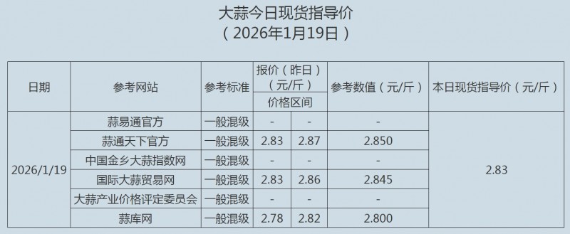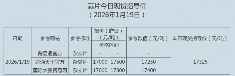 2026年1月19日大蒜、蒜片现货指导价