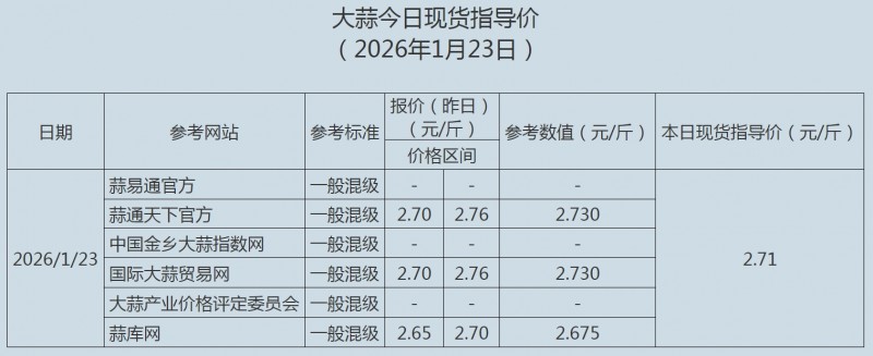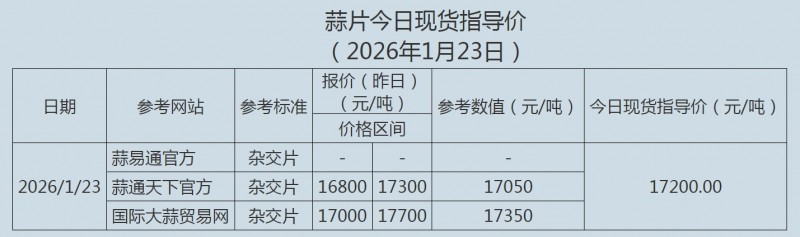 2026年1月23日大蒜、蒜片现货指导价