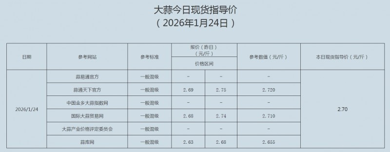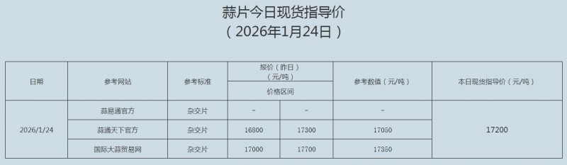 2026年1月24日大蒜、蒜片现货指导价