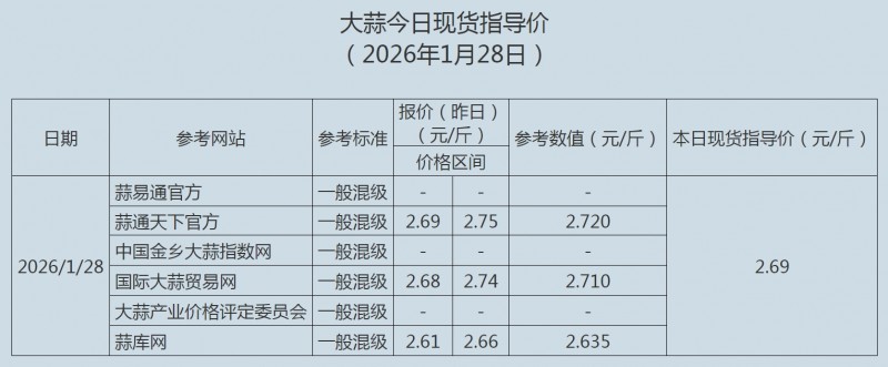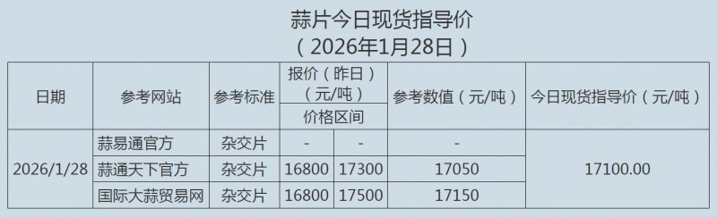 2026年1月28日大蒜、蒜片现货指导价