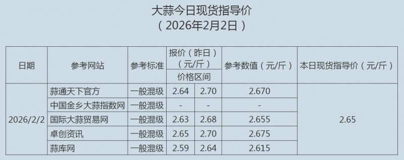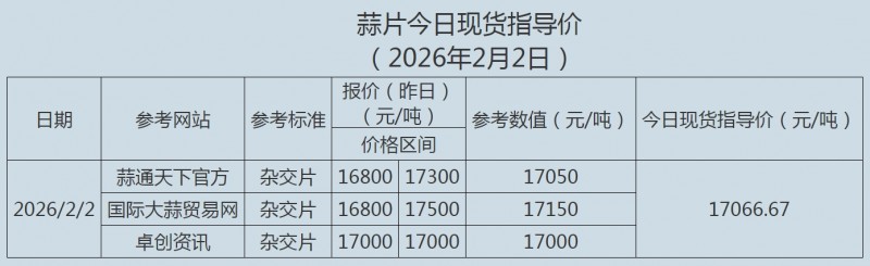 2026年2月2日大蒜、蒜片现货指导价