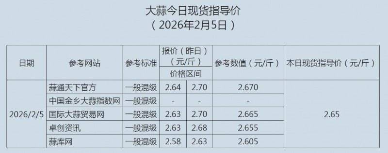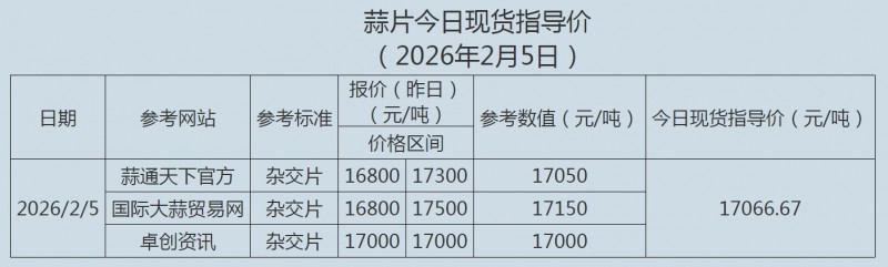 2026年2月5日大蒜、蒜片现货指导价