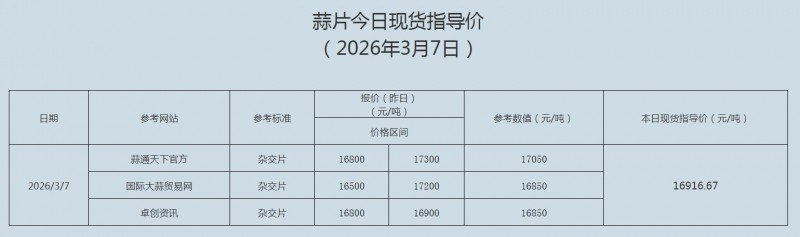 2026年3月7日大蒜、蒜片现货指导价