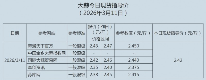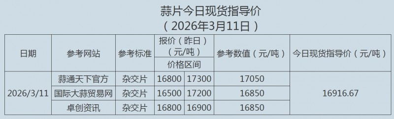 2026年3月11日大蒜、蒜片现货指导价