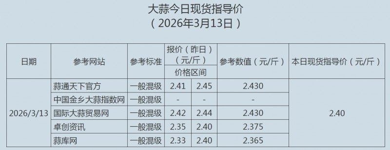 2026年3月13日大蒜、蒜片现货指导价
