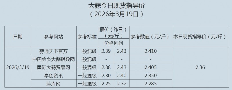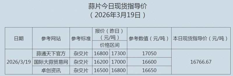 2026年3月19日大蒜、蒜片现货指导价