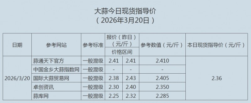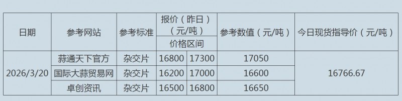 2026年3月20日大蒜、蒜片现货指导价