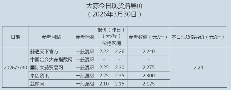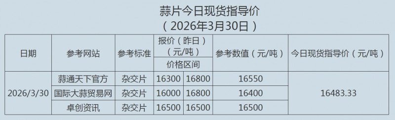 2026年3月30日大蒜、蒜片现货指导价