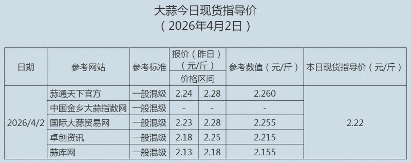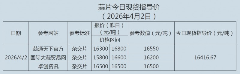 2026年4月2日大蒜、蒜片现货指导价