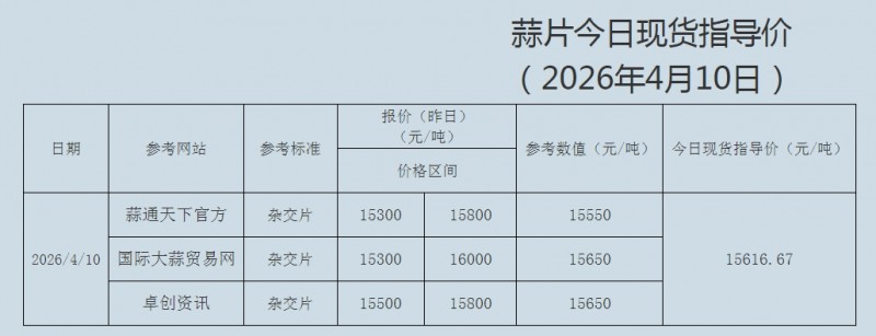 2026年4月10日大蒜、蒜片现货指导价