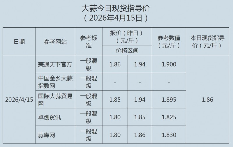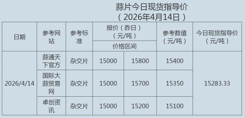 2026年4月15日大蒜、蒜片现货指导价