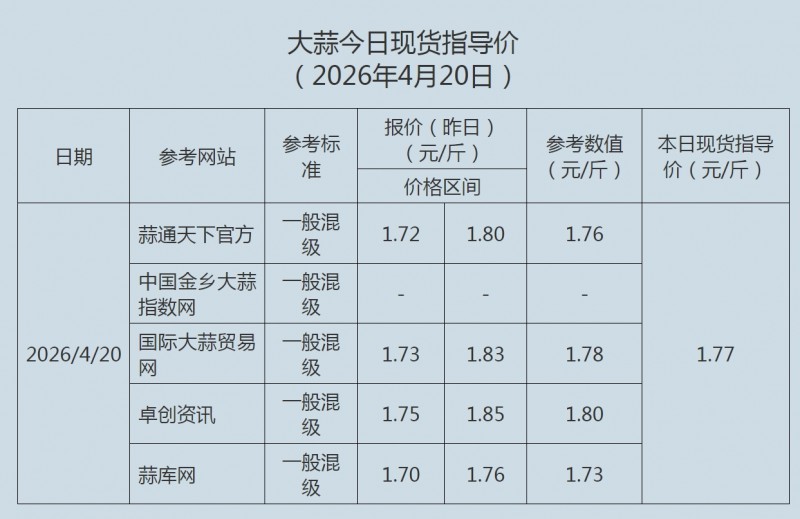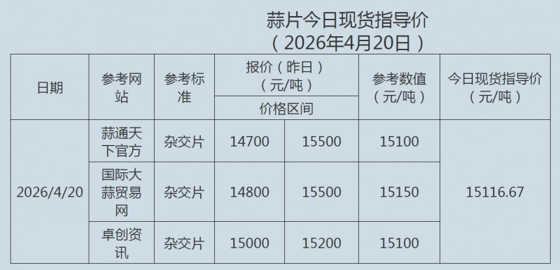 2026年4月20日大蒜、蒜片现货指导价